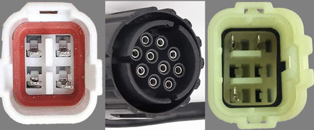 | Standard J1962 16-pin connector used in car OBD2 ports vs DT06-4S in most Harley Davidson bikes |